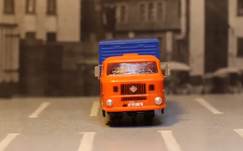 Reifenverbrauch nur noch 33 Prozent, Dieselverbrauch bei 0 Prozent, Nutzlast immerhin noch zehn Prozent. Die Bootswerft Müllrose hatte extra eine kleinere Pritsche aus glasfaserverstärktem Kunststoff gefertigt, die immerhin einer Last von bis zu 500 Kilogramm standhielt. Der Fahrer blickte durch eine einteilige Panoramascheibe auf die Straße. Da mit dem Fahrzeug bevorzugt die Mühle in Müllrose bedient wurde, konnte die Antriebseinheit - Kaltblut Mister Ed - direkt dort betankt werden. Dieses Fahrzeug blieb auch bis zur Auflösung des Kraftverkehrs im Bestand und war vor allem wegen Mister Ed bei den Fahrern sehr beliebt. Es war auch so einflussreich, dass es in einem weit entfernten Winkel der Erde Nachahmung fand, wenn auch auf wesentlich primitivere Art: