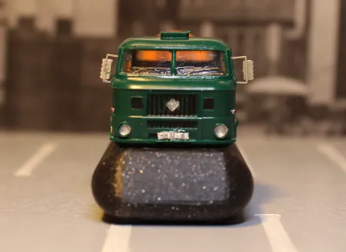 • Im Dunkelblauen wurde wieder gewichtelt, und ich habe ein Auto gebaut, also zeige ich es auch einmal hier. Ich habe mich schon seit einer Weile gewundert, dass es offenbar von einem LKW, der in den 80er Jahren in die DDR kam, kein TT-Modell gibt, und zwar der MAZ-Baureihe, die ab 1981 in Minsk gebaut wurde. (Mir ist zumindest keines bekannt.) Und das, obwohl es von anderen häufig vertretenen LKW-Baureihen schon mehrere Modelle gibt, sei es LIAZ, Jelcz oder erst recht W50. In die DDR kamen laut Typenkompass drei Varianten, der MAZ 5432 als zweiachsige Sattelzugmaschine, der MAZ 6422 als dreiachsige SZM und der MAZ 5551 als zweiachsiger Kipper mit 7 Tonnen Nutzlast und kurzem Fahrerhaus. Für die Wichtelei entschied ich mich für den MAZ 5432. Im Internet gab es reichlich Fotos, aber nur wenige Zeichnungen, die z.T. nur verwandte Baureihen zeigten, über den Status einer Maßskizze nicht hinauskamen oder schlecht aufgelöst waren. Ich habe da ein wenig improvisiert und mittels vieler Detailfotos so modelliert, wie ich es für richtig hielt:
