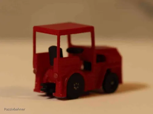 Es scheint so zu sein, dass die größten Gruppen unter den TT-Bahnern die sind, die sich mit der Deutschen Reichsbahn in den Epochen 3 und 4 beschäftigen. Und da das so ist, gibt es hierfür auch das meiste Zubehör, darunter auch fast alle Gummibereiften, zu kaufen. Ich habe dieses Jahr wieder bei der Wichtelaktion im Dunkelblauen mitgemacht und jemanden als zu Bewichtelnden gezogen, der DR Epoche 3 baut. Es war nicht so einfach, noch ein Straßenfahrzeug dafür zu finden, das es in TT noch nicht gibt. Schließlich habe ich mich für den DFZ 632, auch als Pomßen-Schlepper bekannt, entschieden. Vier Stück habe ich davon im Laufe der Zeit selbst fotografieren können, und keiner sieht aus wie der andere. Als Vorbild habe ich schließlich einen gewählt, den ich vor Jahren mal in Finowfurt fotografiert habe: