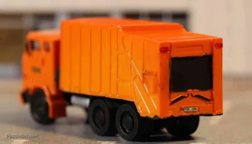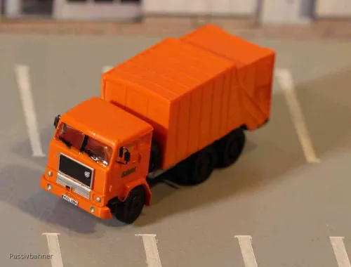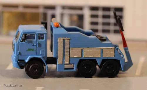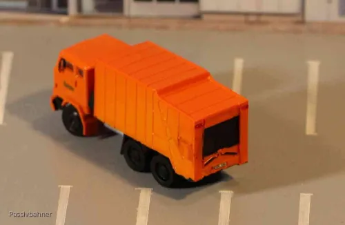 Das Müllfahrzeug ist ein echtes Gemeinschaftsprodukt. Der Aufbau ist ein Abguss von Axi , das Fahrerhaus wie schon erwähnt von Thomas gestiftet, Fahrgestell und Räder habe ich selbst gemacht und bei Shapeways drucken lassen. Decals und Kennzeichen habe ich auch selbst gemacht, die Spiegel sind von etchit. Fenster sind bei allen dreien aus MKK.