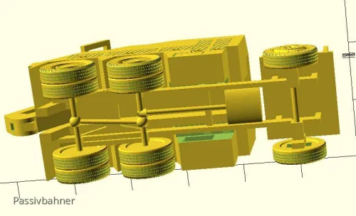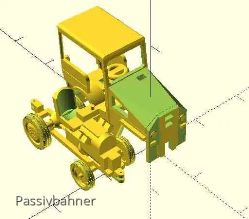 Den Bausatz werde ich irgendwann auf Shapeways einstellen, und da kriegt man ihn entweder ohne Fahrerhaus, so dass man eine Kabine seiner Wahl draufdengeln kann oder mit der korrekten Kabine des Vorbilds, die ich aber erst noch machen muss.