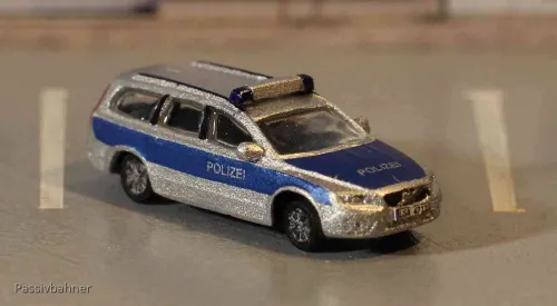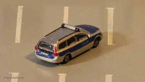 Volvos, letzter Teil. Zwei PKW sollten es auch noch werden, und so habe ich bei Shapeways vom Anbieter 3DCerebro den Volvo PV544, auch als Buckelvolvo bekannt, gekauft und außerdem einen Volvo-V70-Bausatz von adp zum Streifenwagen umgerüstet. Das Sondersignal ist zweiteilig im 3D-Druck entstanden, Decals habe ich selbst angefertigt.