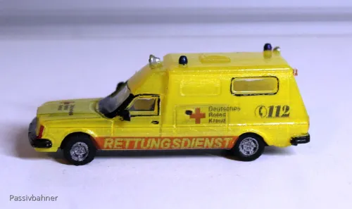 Der neueste Rettungswagen in Middelstedt ist nicht mehr ganz taufrisch, wurde gebraucht gekauft, aber einer gründlichen Revision unterzogen. Es handelt sich um die Volvo 265 Ambulanz von RailNScale, gedruckt bei Shapeways. Dieses Fahrzeug hat von mir ebenfalls Rückspiegel, Fenster aus MKK und Decals bekommen.