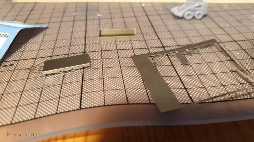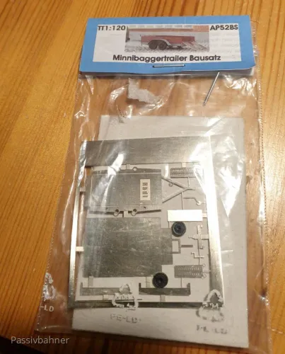 Im Herbst konnte ich im Modellbahnladen im Geraer Hauptbahnhof einen Bausatz eines Minibaggertrailers von Hädl erwerben, der dort offenbar schon mehrere Jahre, wenn nicht gar Jahrzehnte verbracht hatte. Die auf der Verpackung angegebene Homepage stimmt schon lange nicht mehr, und ich konnte auch keinen Beleg für diesen Bausatz im Internet finden. Lediglich ein änliches Fertigmodell fand ich, das aber keine Auffahrrampen hat, dafür einen offenbar fest verklebten Planenaufbau. Hier der Bausatz sowie eine erste Annäherung an den Bau (Das Teil war mein erster Ätzbausatz):
