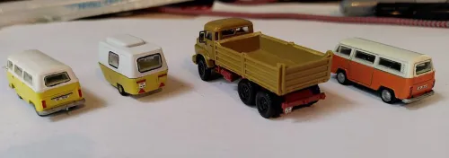 Zum Robur: Die DDR-Standardtürgriffe für alles wechselten von Alu zu Plaste. Die von dir dargestellten großen Rückspiegel der letzten Generation waren in der Tat schwarz von vorne, die Metallhalterung dafür war beim Vorbild aber häufig alu-farben, also silber. Natürlich kann die jemand auch schwarz angemalt haben.