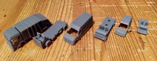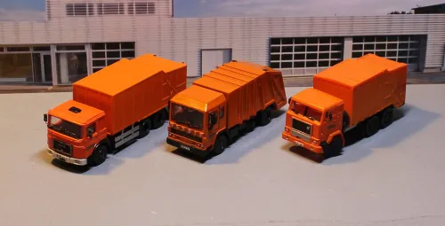 Das Müllfahrzeug ist dabei keine Neuheit aus 2024, hatte ich aber zusammen mit den beiden Transportern bestellt, und zwar bei Arch Laser (UK), welche über Osborn's Models problemlos nach Deutschland geliefert werden. Hier mal nur die drei Fahrzeuge dieses Anbieters:
