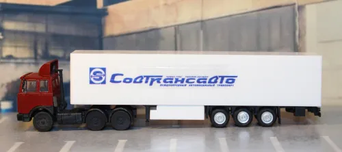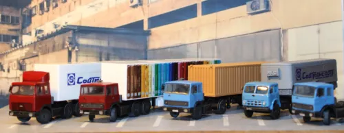 PS: Der modernere soll erst bei Toni Kennzeichen kriegen, der rote 6422 mit Ritter-Sport-Auflieger hat lettische Kennzeichen bekommen, so wie die LKW heute noch gelegentlich im Baltikum zu sehen sind, dann steht da der 5432 mit Karl-Marx-Städter Nummer, wie er verwichtelt wurde, der MAZ 504 hat sowjetische Kennzeichen bekommen, und der zweite 5432 wartet mit fiktivem Middelstedter Kennzeichen darauf, im Frühjahr den Auflieger des Übertragungswagens zu bekommen, so wie das Gespann immer noch in Deutschland existiert.