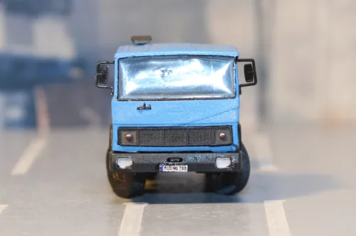 Im Dunkelblauen wurde wieder gewichtelt, und ich habe ein Auto gebaut, also zeige ich es auch einmal hier. Ich habe mich schon seit einer Weile gewundert, dass es offenbar von einem LKW, der in den 80er Jahren in die DDR kam, kein TT-Modell gibt, und zwar der MAZ-Baureihe, die ab 1981 in Minsk gebaut wurde. (Mir ist zumindest keines bekannt.) Und das, obwohl es von anderen häufig vertretenen LKW-Baureihen schon mehrere Modelle gibt, sei es LIAZ, Jelcz oder erst recht W50. In die DDR kamen laut Typenkompass drei Varianten, der MAZ 5432 als zweiachsige Sattelzugmaschine, der MAZ 6422 als dreiachsige SZM und der MAZ 5551 als zweiachsiger Kipper mit 7 Tonnen Nutzlast und kurzem Fahrerhaus. Für die Wichtelei entschied ich mich für den MAZ 5432. Im Internet gab es reichlich Fotos, aber nur wenige Zeichnungen, die z.T. nur verwandte Baureihen zeigten, über den Status einer Maßskizze nicht hinauskamen oder schlecht aufgelöst waren. Ich habe da ein wenig improvisiert und mittels vieler Detailfotos so modelliert, wie ich es für richtig hielt: