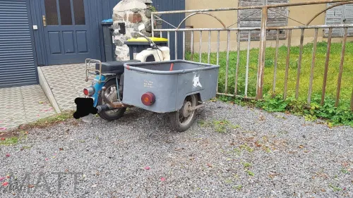 Zwar weiß ich nicht was das genau für ein Moped is ,mein Interesse hat mehr der " beiwagen " geweckt.