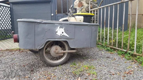 Für Mopeds gab es einen Anhänger aus verzinktem Blech , ebenso eine Variante als Fahrrad -Anhänger.