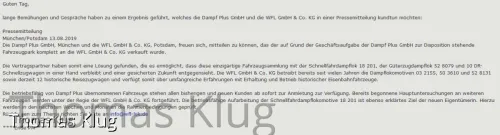 gerade kam die Pressemitteilung von Dampf Plus GmbH und WFL zur Übernahme des Fahrzeugpark inklusive 18 201 und Weiterführung der Geschäfte durch WFL herein.
