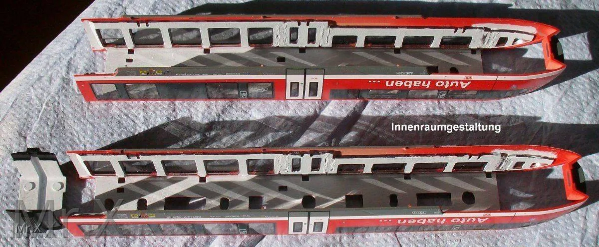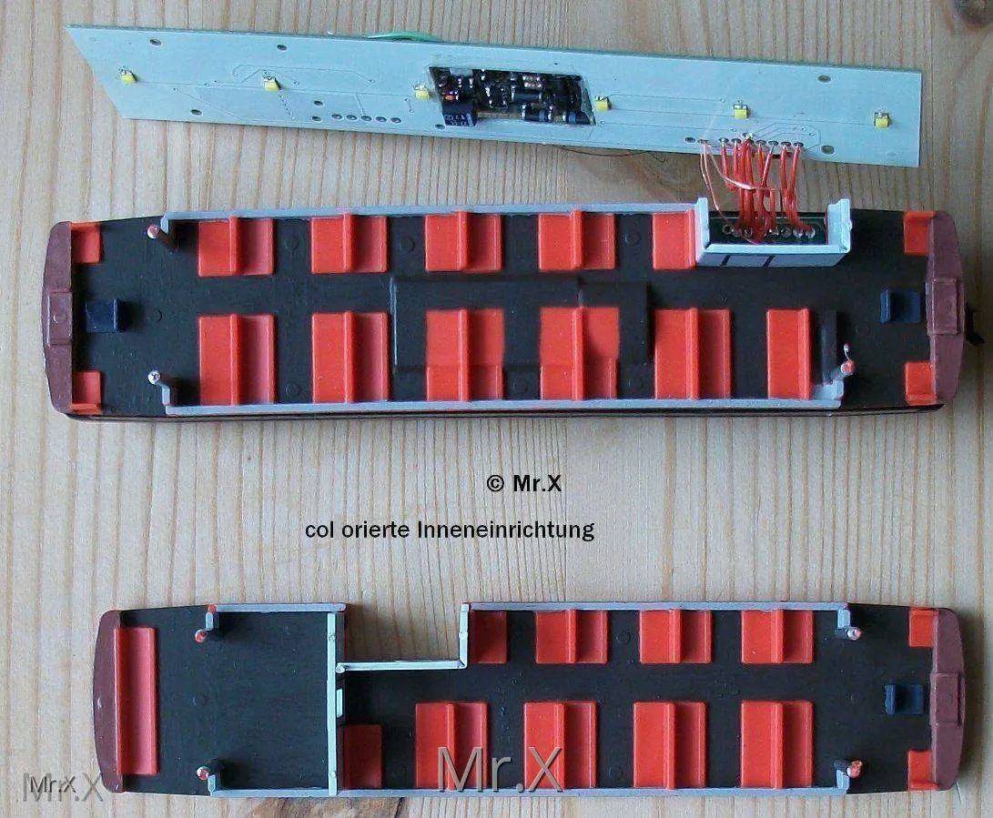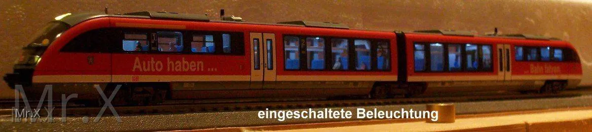 Die Schlusslichter wurden separat schaltbar ausgeführt, das zum Steuerwagen zeigende Motorwagenende ist beleuchtungstechnisch abschaltbar. Die Toiletten besitzen Beleuchtung auf ein und der selben Taste (F10), d.h.: Im Betrieb als Einheit geht es im Steuerwagen, im Solobetrieb im Motorwagen. Stützkondensatoren fanden auch noch Platz.