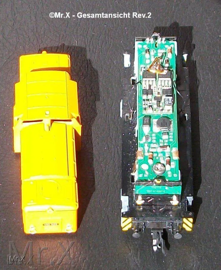 Die Platine passt natürlich auch in die JATT - Lokomotive, allerdings muss der Motor mit Litze verbunden werden und am Oberteil einige Anpassungen vorgenommen werden.