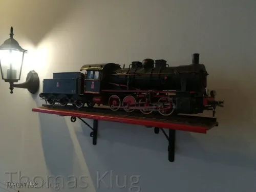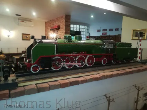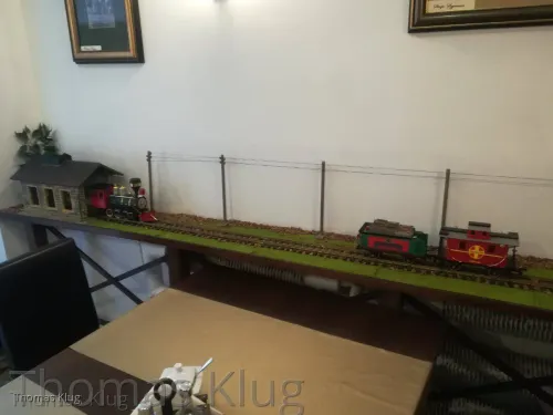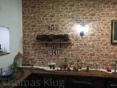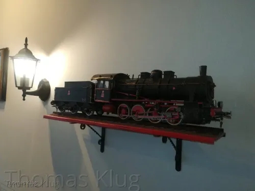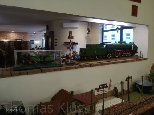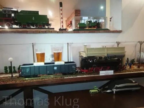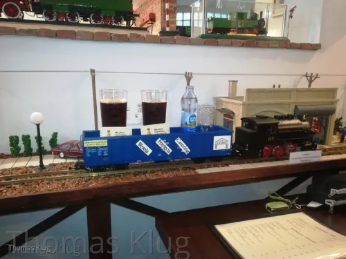 Dieses ist mit viel Aufwand und Liebe ausgestaltet. Die Getränke kommen per Zug an den Tisch.