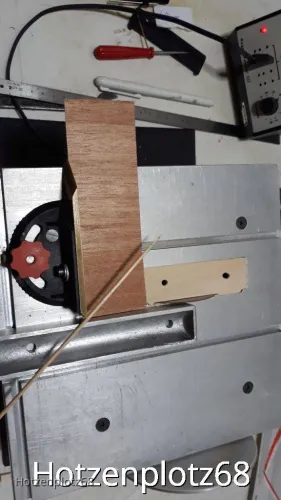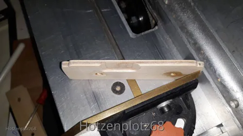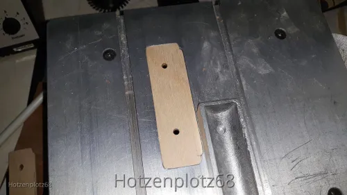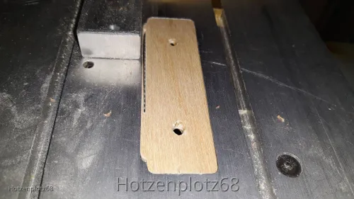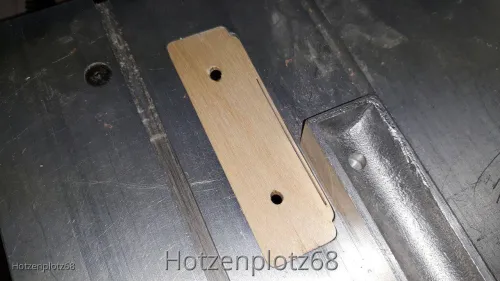Ich habe mir dann noch aus einen Schaschlyk-Spieß ein Schiebehölzchen gemacht, damit ich bei den vielen Zähnen des Sägeblattes nicht rätseln muss, welcher Zahn mich zuerst geritzt hat.
