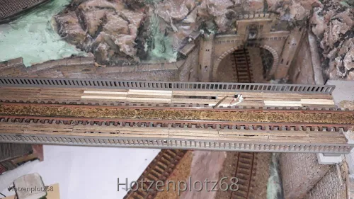 ) war der Meinung, ein Holzschuppen und ein Brückenlauf müsse aus echtem Holz sein.Nun mal kurz die Gedenkkugel
