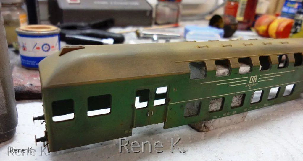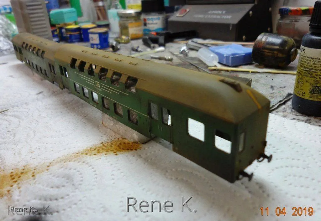 Der Wagen ist noch nicht ganz fertig, die Drehgestelle müssen noch gealtert werden, ich denke man kann aber sehen wohin es gehen soll.