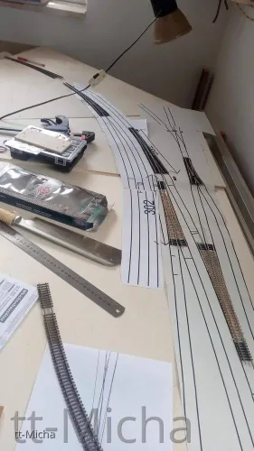 Ich klebe die Schwellen auf meine Vorlage auf ,das geht genau so.