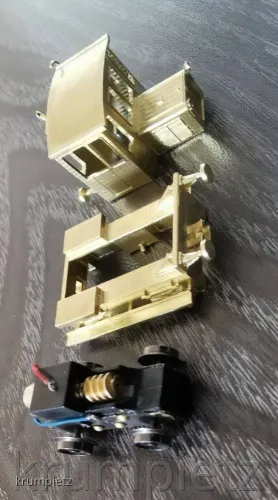 am Wochenende konnte ich einen Prototypen des DSB Traktor in Empfang nehmen. Er ist in Messing gefertigt und würde speziell für den abgebildeten Antrieb konstruiert. Ich bin total begeistert von der Konstruktion, der Ausführung und der Qualität des Gehäuses. Es wurde sehr viel an Details realisiert. Der Auspuff ist nachgebildet, die Lampen hinten sind freistehend, die Löcher für die Griffstangen sind vorhanden usw. Das Gewicht des kleinen beträgt ca. 24 Gramm. Es wird noch eine kleine Überarbeitung geben und dann bei Shapeways zu kaufen sein. Deswegen kann ich auch nichts zu Preis sagen...