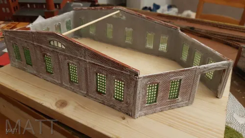 Ach so ja ,das Material der Papp Halle stammt von Busch .Die Fenster und Anbauten sind aus der Bastel Kiste.