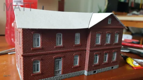 Dieses ist ja nun vorerst mit einem Dach aus Pappe versehen worden ,nun die Frage, welche Farbe würdet ihr verwenden, Schwarz wie auch alle anderen Gebäude?