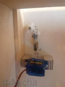 Da ist einfach nur ein Servo drunter ,der Servo macht die Drehbewegung der Laterne und über die Stangen wird die Gleissperre bewegt .
