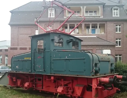 im Bild seht Ihr die Lok vor der Behala Hauptverwaltung im Westhafen Ihr Dasein fristen