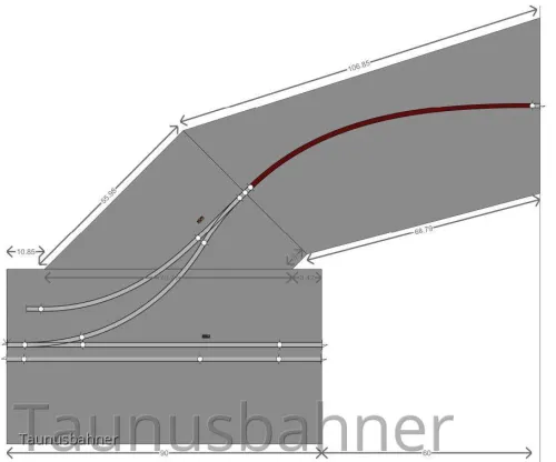 Vorgabe war eine Abzweigung von einer zweigleisigen Hauptbahn auf eine Nebenbahn.