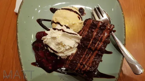 Um noch mal auf's Essen zu kommen @Leichter Pacific gibt es bei dem Grill Stammi auch solch köstlichen warmen Schokokuchen mit Sahne, Vanilineis und Kirschragut?:700::essen: