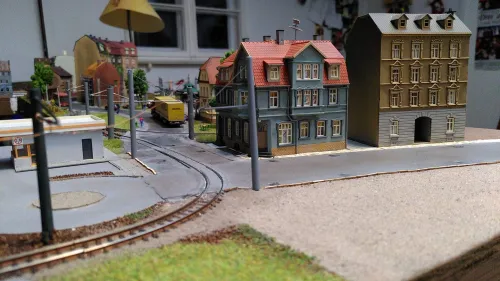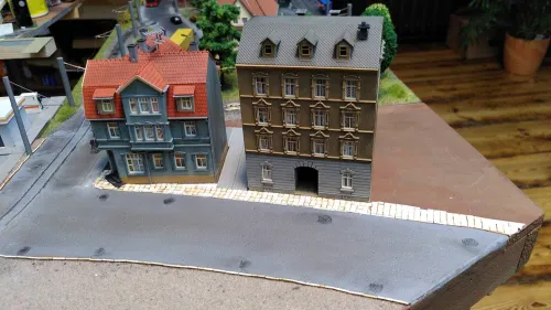 Geweg wurde gepflastert sowie das Eckhaus von Auhagen aus einer älteren Bausatzauflage gebaut: