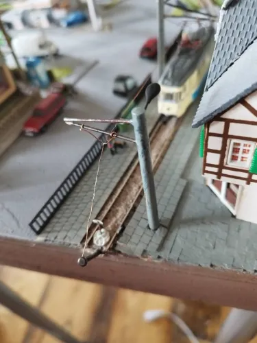 Der Abhänger am letzten Mast ist quasi provisorisch angebracht falls die Anlage erweitert wird? Dann kann man den Fahrdraht besser handeln?