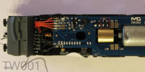 Auf meiner Leiterplatte der BR 285 (Tillig Nummer 202851) im Inneren der Lok ist eine Diode durchgebrannt.
