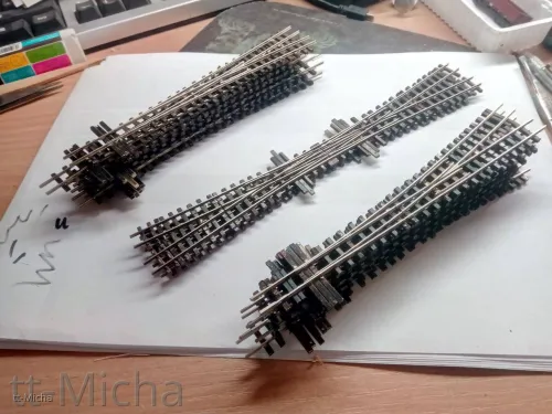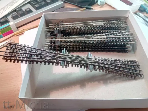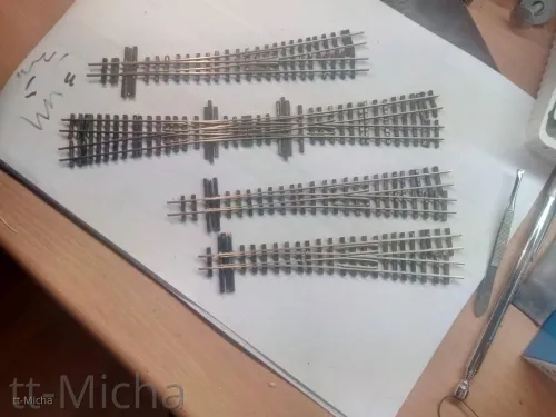 Als Weichen für den Bahnhof verwende ich die D70-1:6 Weiche mit 9,5° Abzweigwinkel und Code 55 Profil.