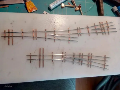 Kann man sich doch dann daran orientieren, wie es bei den/unseren TTe Gleisen zu verbauen wäre.Und im Zweifelsfalle hilft auch der Zahnstocher, so wie im letzten Videoschnippsel zu sehen