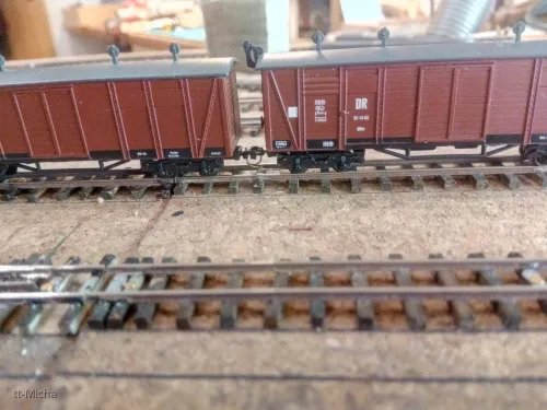 Ich hab nun die Entkuppelmagnete verteilt und meine Fahrzeuge mit Kadee Kupplungen ausgerüstet , dazu müsste die Lok erst Mal etwas zerlegt werden .
