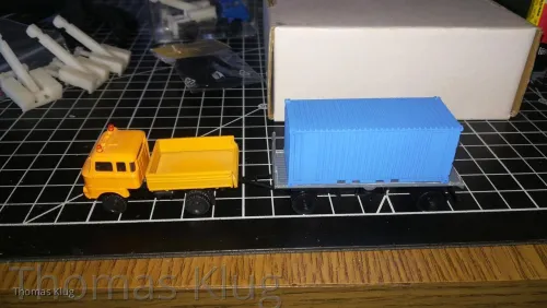...und so zwischen durch ist auf Basis eines Wiewald Anhängers aus dem Hause Hädl Manufaktur ein Container Anhänger entstanden, wie sie bei uns im Kraftverkehr Zwickau im Einsatz waren.