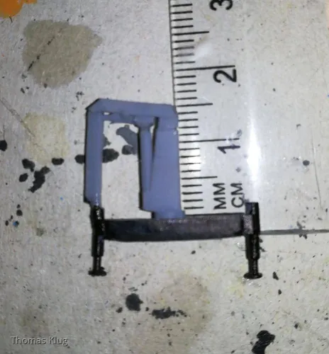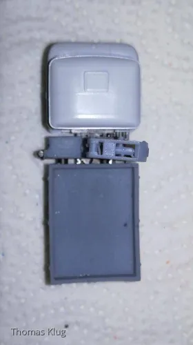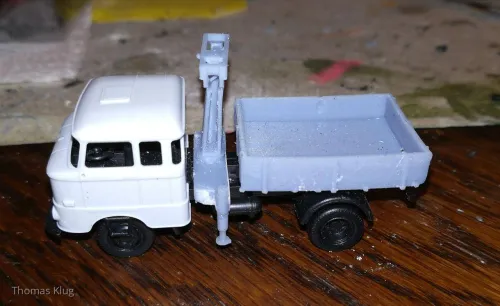 Den Ladekran musste ich erst einmal auf das richtige Maß bringen da der Probedruck etwas zu hoch ausgefallen war. Also 5mm in der Höhe gekürzt und die Abstützung ebenfalls, nun passt er.