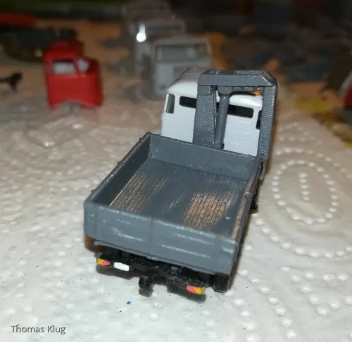 Basis hierfür war wieder eine kurze Sattelzug Maschine von Hädl, die Pritsche und der Ladekran sind im 3D-Druck entstanden.