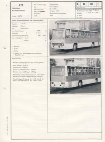 Mein 255er ist ein 255er ab Baujahr '77 mit Reisebusbestuhlung und wie ab '77 üblich kurze Schlagtüren, um es genauer zu sagen ein 255.71 mit Blattfedern, 5 Gang Schaltgetriebe und einem Raba‐MAN D2156 Motor mit 192 PS mit Baujahr 07/1982.