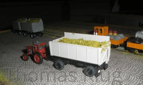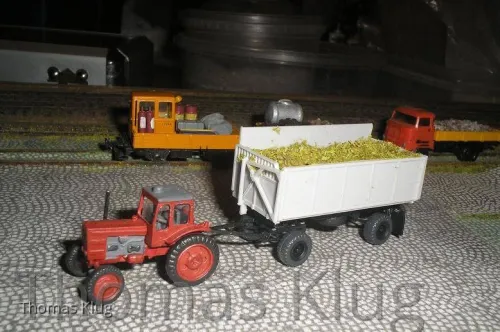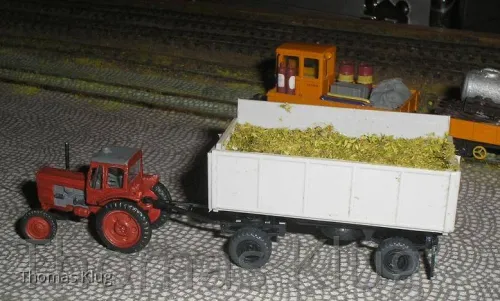 Der HW80 mit Häckselaufbau Typ Oschatz hat bei dieser Gelegenheit auch gleich seine "Füllung" erhalten, und ein passendes Zugfahrzeug in Gestalt des Belarus MTS 50.