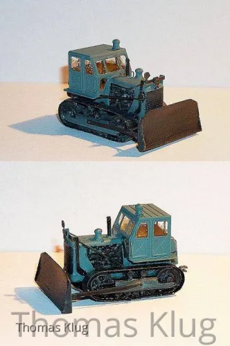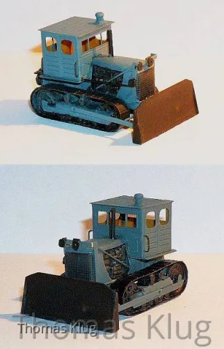 • ...da ich derzeit auch noch einige Raupen "Stalinec" S-100 zusammenbaue war bei einer der Bausatz nicht vollständig... :48: ..also habe ich improvisiert und kurzerhand aus einem "Seilpfeiffer" eine T -100 mit Hydraulikzylindern und so die modernisierte Variante gebaut.