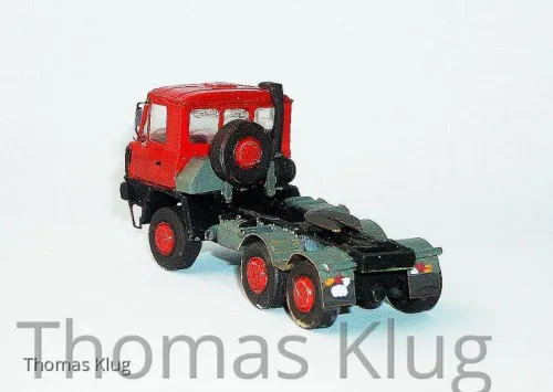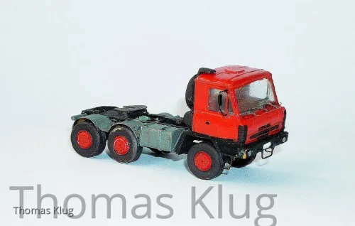...weiter ging es mit dem Tatra 815 6x6 als Sattelzugmaschine, hier in der Standard Farbgebung rot und geätzter Fahrerkabine.