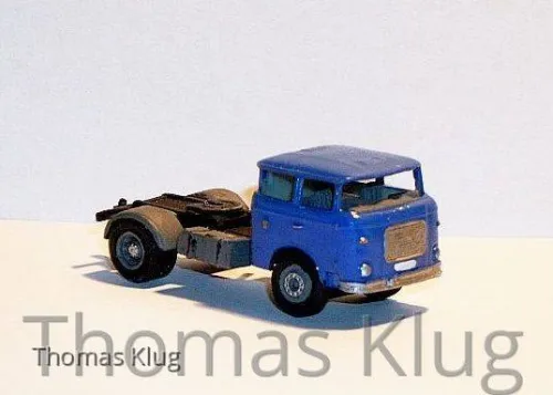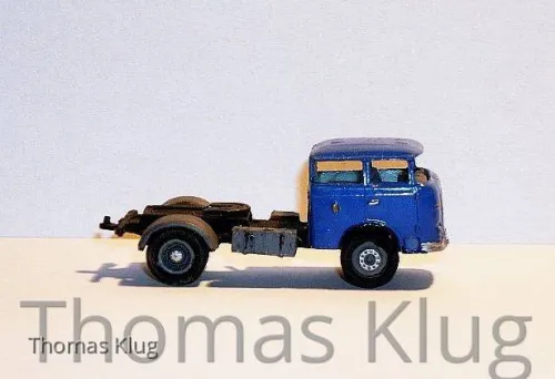 Ebenfalls aus einem Bausatz entstanden und in blau mit grau-beigen Fahrerhaus...