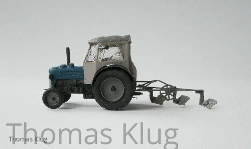 ...damit der Trekker nicht so alleine übern Acker tuckern muss, erhielt er neben einem Plateauwagen noch einen Pflug...