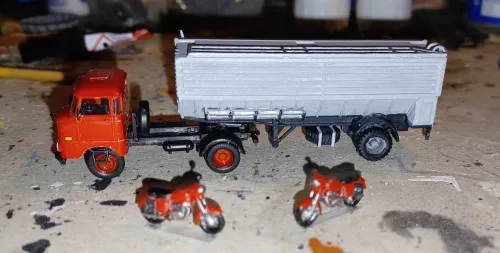 Auch wurde die passende Sattelzugmaschine (aus dem Hause Hädl Manufaktur) zusammengebaut und lackiert.