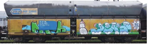Vorlage ist ein mit Graffity versehenes Modell, im Hauptmotiv mit einem Schneemann. Es sind keine Decals, sondern alles ist per klassischem Druckverfahren aufgebracht. Insgesamt waren 9 Farbdruckvorgänge vonnöten...