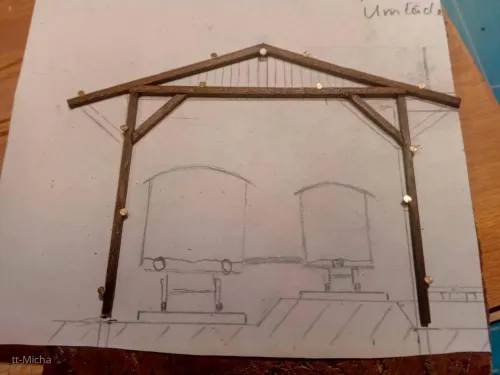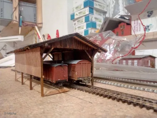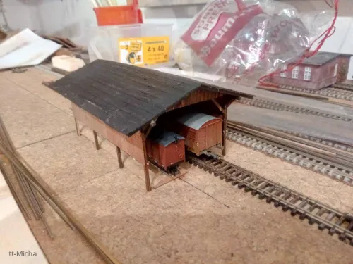 Da es auf dieser Strecke keinen Rollwagen-Einsatz gab ,müssten in Grünstädtel die Waren in Regelspurgüterwagons umgeladen werden ,um dies Witterungsgeschützt machen zu können stand dort ein Umlageschuppen wo die Schmalspur Gleise angehoben waren so dass in einer Höhe die Waren von Schmalspurwagonsn auf Regelspurwagons umgeladen werden könnten . Dies möchte ich in meinem Übergabebahnhof auch wenn er wenig mit Grünstädter zu tun hat nachbilden .