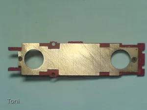 So wird dann die Montage doch wesentlich vereinfacht und der "Drahtverhau" deutlich minimiert, weil dann (unter dem Motor liegend) nur noch der Decoder, der Lautsprecher, die Pufferkondensatoren (nebst Ladeschaltung) und eventuell auch noch die Leitungen der Beleuchtung an die noch zu fertigenden Leiterzüge angelötet werden müssen und das ganze dann als "Gesamtteil" einfach aufs Fahrwerk geschraubt werden müsste.