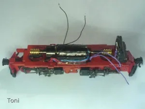 Motor, Stromabnehmer und Lautsprecher werden mittels Decoderlitze entsprechender Farbe verdrahtet.