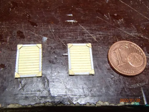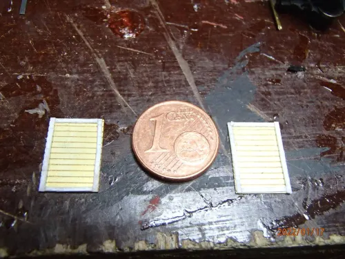 Weiter ging es dann mit den beiden Seitentüren. Da nicht alle Teile auf der Platine sind, ergänze ich notwendiges mit Papierstreifen oder Messingwinkel.